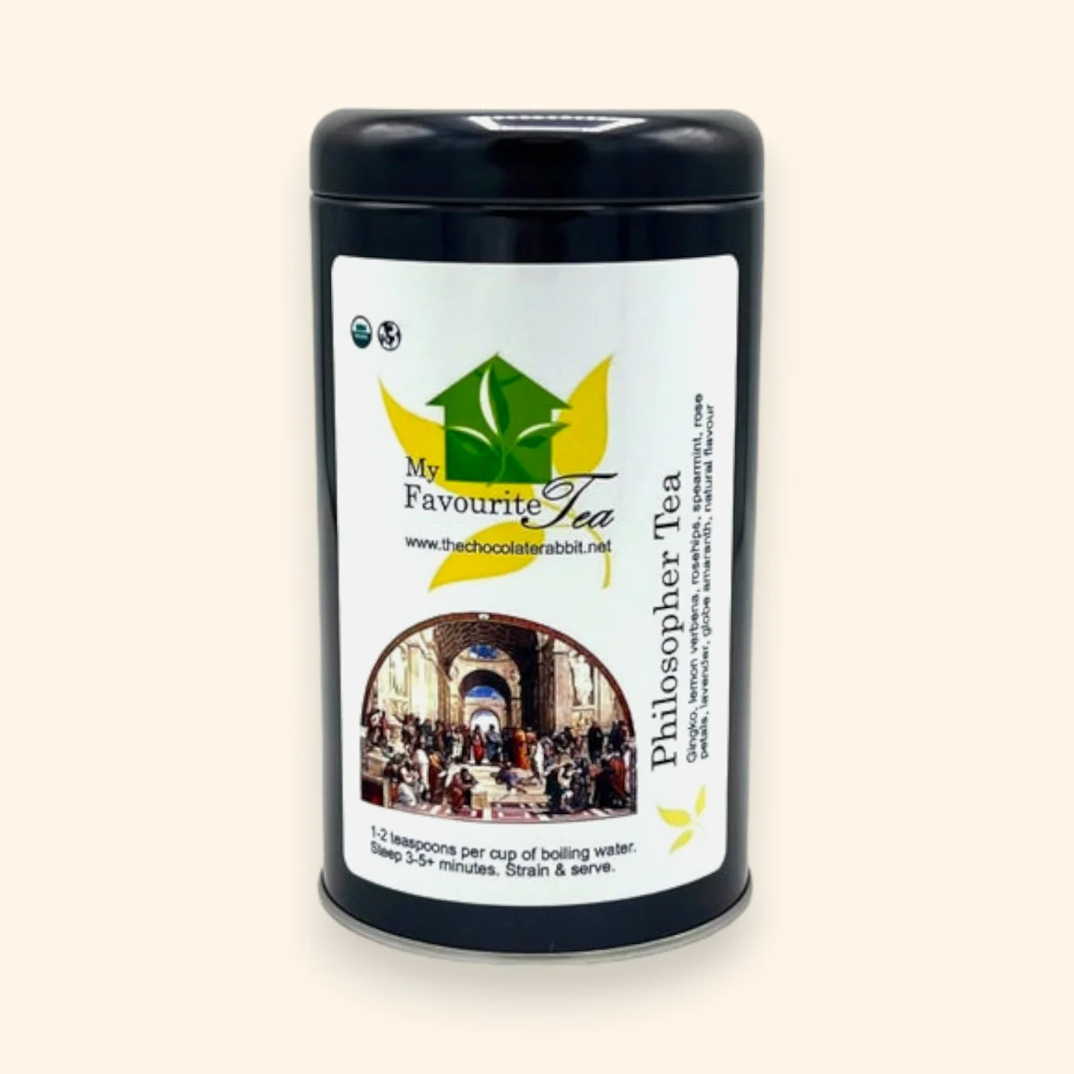 Gingko, lemon verbena, rose-hips, spearmint, rose petals, lavender, globe amaranth, natural flavor